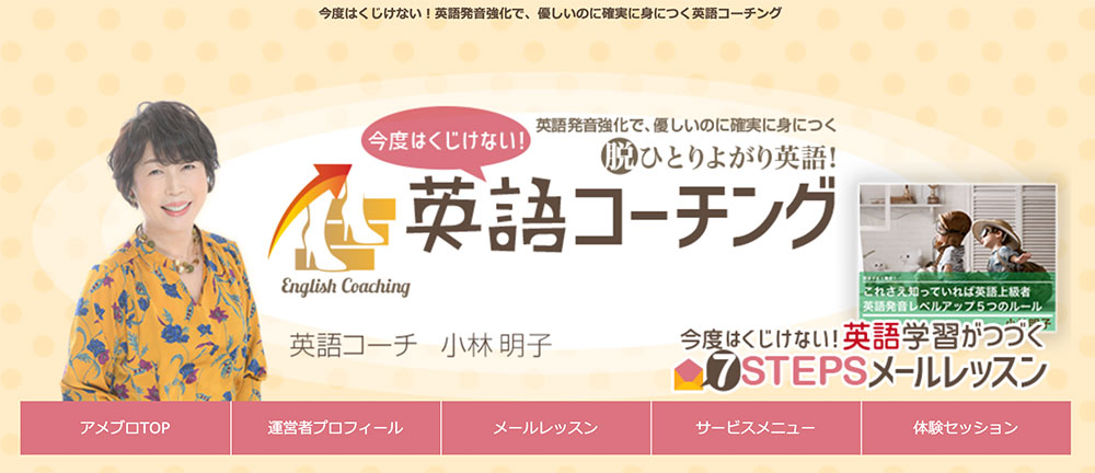 制作実績:今度はくじけない!英語コーチング 2018年9月25日 最終更新日時 : 2026年2月24日 カイエダ ミエ ブログ名:今度はくじけない!英語コーチング クライアント:英語コーチ・小林明子さん 行ったこと:Webコンサルティング4ヶ月コース ブログ構築、デザイン アメブロデザイン 更新方法レクチャー PDF作成指導 トップページ ロゴ アメブロ 小林さんからご感想をいただきました▼ コンサルティング受講者の声「メルマガ登録の入り口がたくさんできました!」小林明子さん(英語コーチ、東京都在住、50代) | おもてなしブログ®︎の教科書 (Webディレクター・カイエダ ミエ) 【個別相談会ご感想】「カイエダさんからお客様への真摯な姿勢を感じました」小林 明子さん(英語コーチ、東京都在住、50代) | おもてなしブログ®︎の教科書 (Webディレクター・カイエダ ミエ) FacebookXCopy